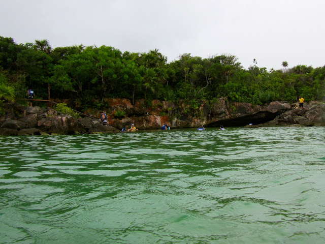 这里游进去是个玛雅天然井,天晴有阳光的时候应该颜色不错,下雨天也就是个暗区区的洞。这里是很多13刀拍照点之一,拍照的墨西哥小哥跑上跑下地白忙了一通。