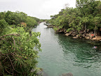 不是什么地方都可以弄个Xel-Ha出来的。除了有红树林,丛林,天然井,石窟等自然风貌外,这里因为有小湾(inlet)和河流汇合,温度低的地下河的淡水和温度高的海水混合,又不能完全混合,产成了盐跃层(halocline)和温跃层(thermocline)的现象。这种特殊的环境也为游客提供了同时观赏海水鱼和淡水鱼的机会。
