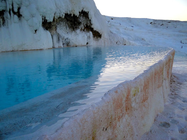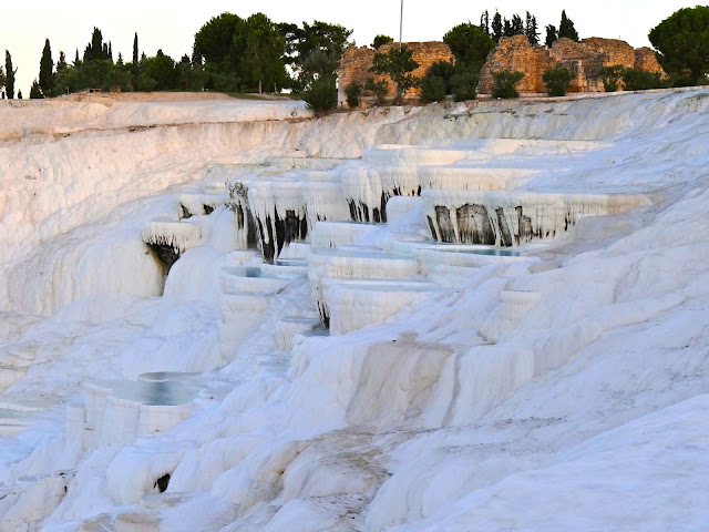 棉花堡是个小镇,到哪里都走不到几步路。没有想象中那么商业化。除了metro门店那个花痴,见个母的过去就要叫唤,这个地方给我印象很好,不少店主看着都淳朴。而且和后面几个停留点相比,算是最价廉物美的。觉得棉花堡可以安排两夜一天,花一整个白天在那里。不仅仅是石灰华,后面的古迹Hierapolis也不错,而且很大。不急着赶车,就可以在大批游人散去后,悠闲地看看夕阳,泡泡温泉。这个地方以后还会再来一次。