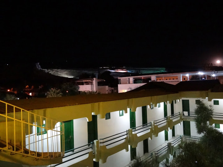 旅馆check-in的时候是下午三点多,已经是两个晚上没挨过床了。本来准备睡一下,六点起来去看棉堡日落,没想到醒来的时候天都黑了,幸好还没有错过晚餐时间。那就明天看棉堡日出吧,也不知道方向对不对。棉花堡24小时开放,晚上打灯光,票价20里拉。